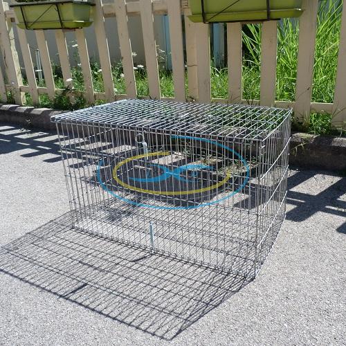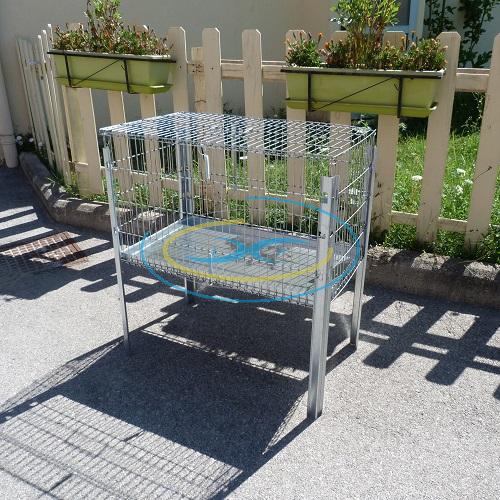 Gabbia per galline ovaiole modulare. Acquistata senza accessori è ideale al trasporto perchè dotata di maniglia. Realizzata in fil di ferro zincato, secondo le necessità e le comodità per il trasporto delle galline. E' possibile acquistare in modo opzionale, il kit 4 gambe (cod.02810074) e il piatto per deiezioni (cod.02810072), entrambe facilmente installabili e removibili. Questi opzionali sono utilissimi per creare 4 diverse soluzioni. Con l'utilizzo del kit gambe, il cesto diventa una gabbia per ovaiola, sia con che senza piatto per deiezioni. La capienza è idonea ad una gallina, alla paglia del nido ed all'inserimento di una piccola mangiatoia ed un piccolo abbeveratoio (anch'essi acquistabili a parte). Senza kit gambe è ideale per il trasporto e si può utilizzare così come venduta o con l'aggiunta del piatto deiezioni per trasporto in auto.