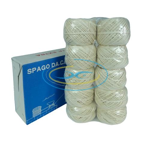 Spago di lino colore bianco, detto anche Calzolaio, solitamente utilizzato per braciole e salsicce fresche. Il pacco comprende una vaschetta di cartone con 10 gomitoli confezionati singolarmente da 28 grammi circa ciascuno color bianco.